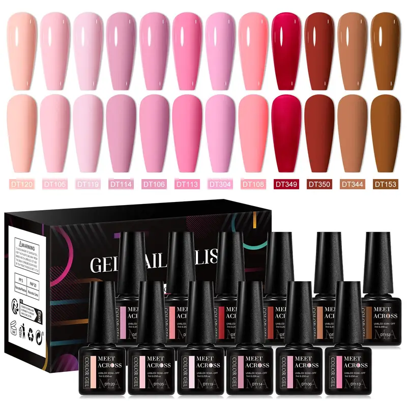 MEET ACROSS 7ML 12pcs Gel Nail Polish Solid Color Glitter SSZH62001